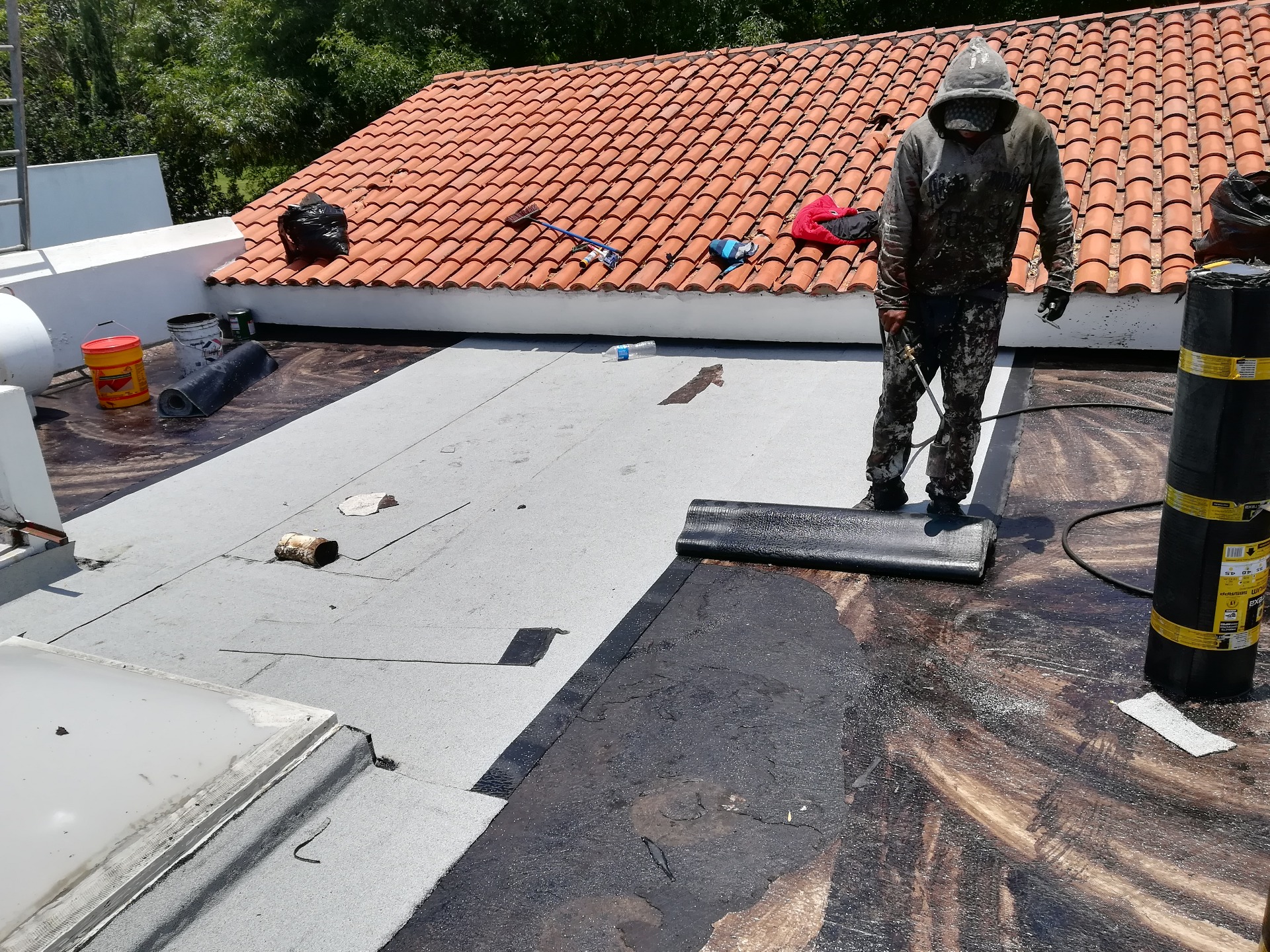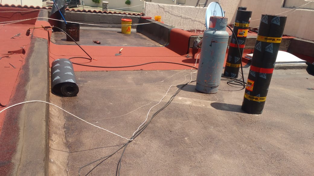 Aplicación de sika manto 4.00 mm. membrana de refuerzo de poliester, rojo.