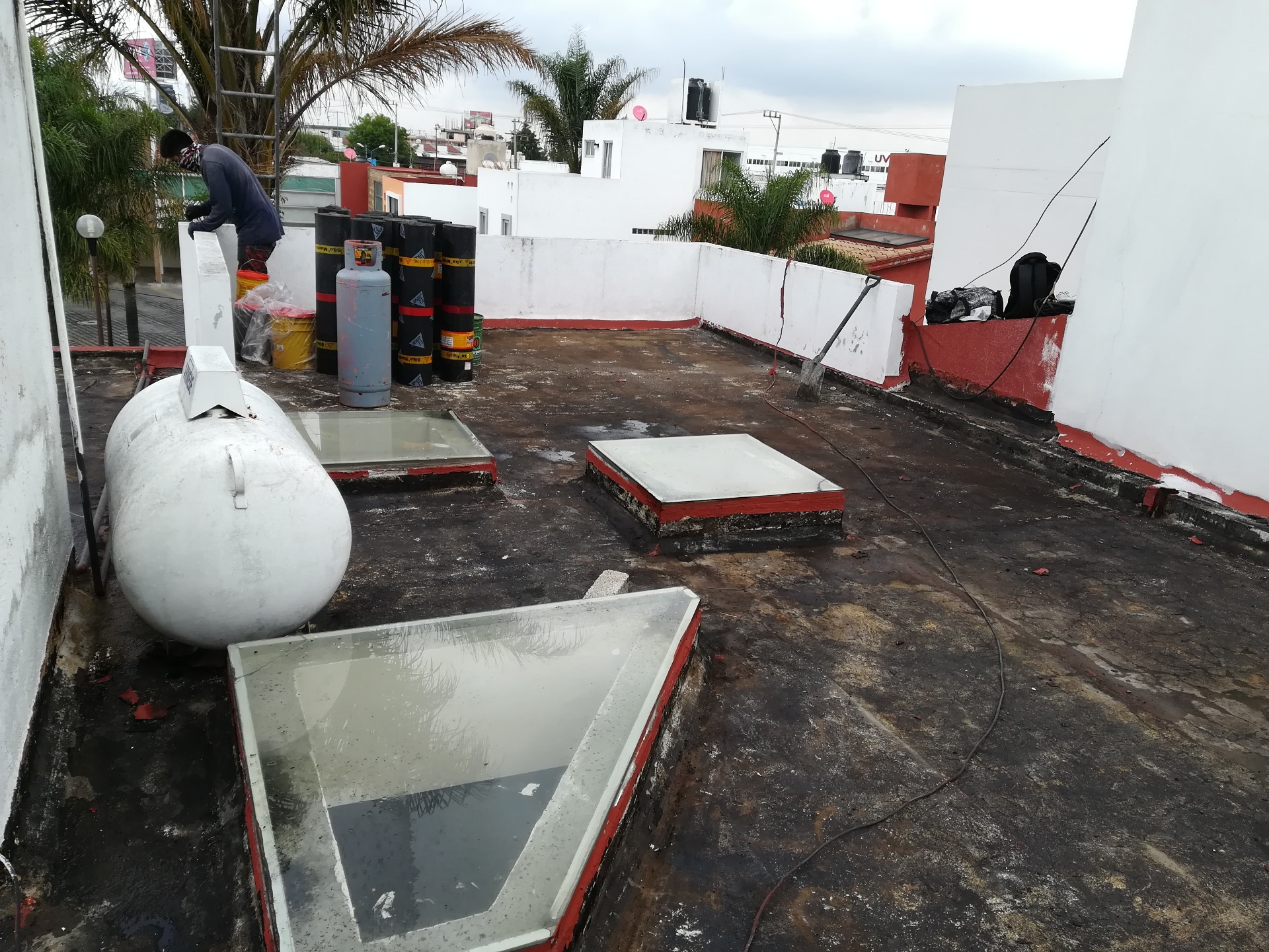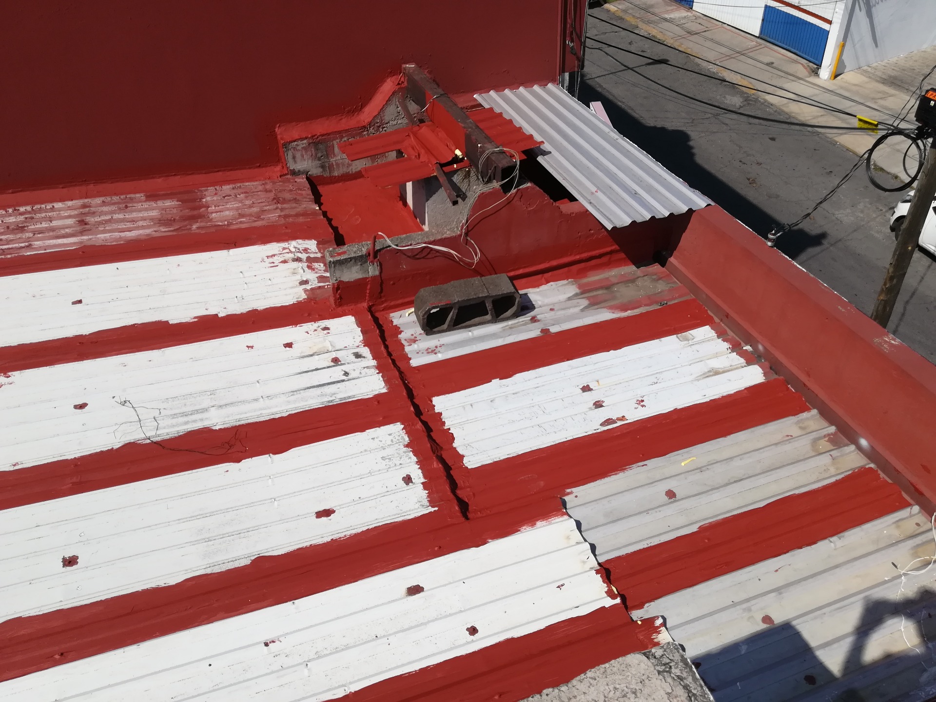 Impermeabilización de la agencia de motos "Honda Del Rio", aplicación de "Acril Techo Power 6 años" rojo con malla reforzada.